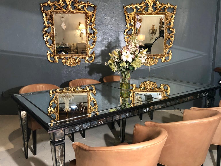 Italian table dining room set consisting of a table and six chairs. Arabella hollywood regency gold leaf iron coil round beveled wall mirror. In the '70s it blended well with mid century modern styles particularly in california, à la palm beach style. See more ideas about decor, interior, interior design. Set of 2 lacquered italian hollywood regency dining chair by pietro costantini.